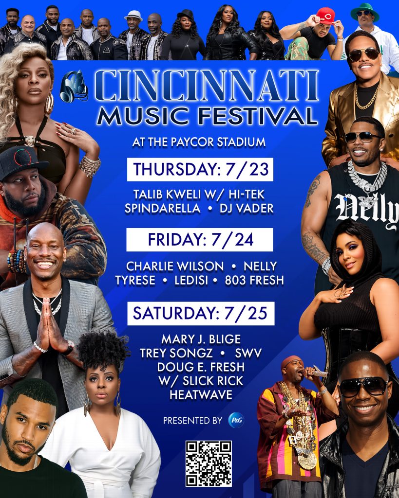 The 2025 Cincinnati Music Festival was an outstanding success. In many ways, this event was the best ever, thanks to the dedication of you, the customers, and the incredible performances by all the artists, musicians, and performers. There were countless memorable moments throughout the festival.– LL Cool J – Tribute to Frankie Beverly featuring Maze with Jubu. Special guest appearances by Ronald Isley, Joe, After 7, Dave Hollister, and Raheem DeVaughn – Lucky Daye – 112 – The Bar-Kays – Toni Braxton- Earth, Wind & Fire – Anthony Hamilton -Jazmin Sullivan – PJ Morton – Zapp Band – A Tribute to King Records Ft Dreion- Scarface – Goodie Mob – Young MC – The Sugarhill Gang